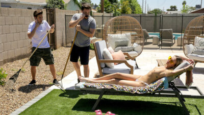 Haley Spades and her stepbrother, Jodie Johson, are doing homework at the table together. Jodie can’t keep her eyes off of Haley. She knows that Jodie wants her, but the real question is whether she’s bored enough to fuck him. As Jodie gets more and more antsy Haley gets up and walks over to him to see what he wants. Jodie claims that he needs help with his homework, but Haley comes on to him hard. She tells him that she wants someone to knock her up and then struts away.Later, Haley is in her bedroom wearing an outfit that she knows Jodie won’t be able to resist: a sheer one-piece getup that’s torn at the crotch. Pretending she doesn’t know that Jodie is there, Haley waits with a big smile as her stepbro creeps in and then whips his hardon out to fuck her from behind. Once Jodie has shoved it in, Haley is soft and sweet beneath him, rocking back to meet him stroke for stroke in doggy.Rolling onto her back, Haley has Jodie keep on pounding that puss as she rips the chest of her outfit to let her tits out. She sucks her own goo off of Jodie’s stiffie as she gets naked, then climbs on top to ride in reverse cowgirl. Turning around, Haley keeps the pussy party going in cowgirl until she can tell that Jodie is ready to bust a nut. Grinding down, Haley makes sure to get a nice creampie of all that cum in the hope she’ll get knocked up.