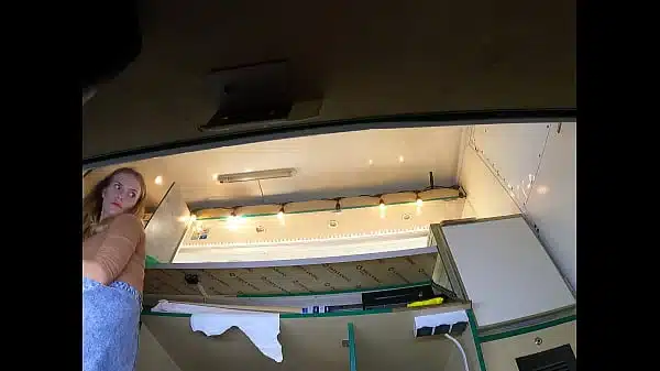 Super sexy girl with long legs and big pussy lips flashing her naked ass at work